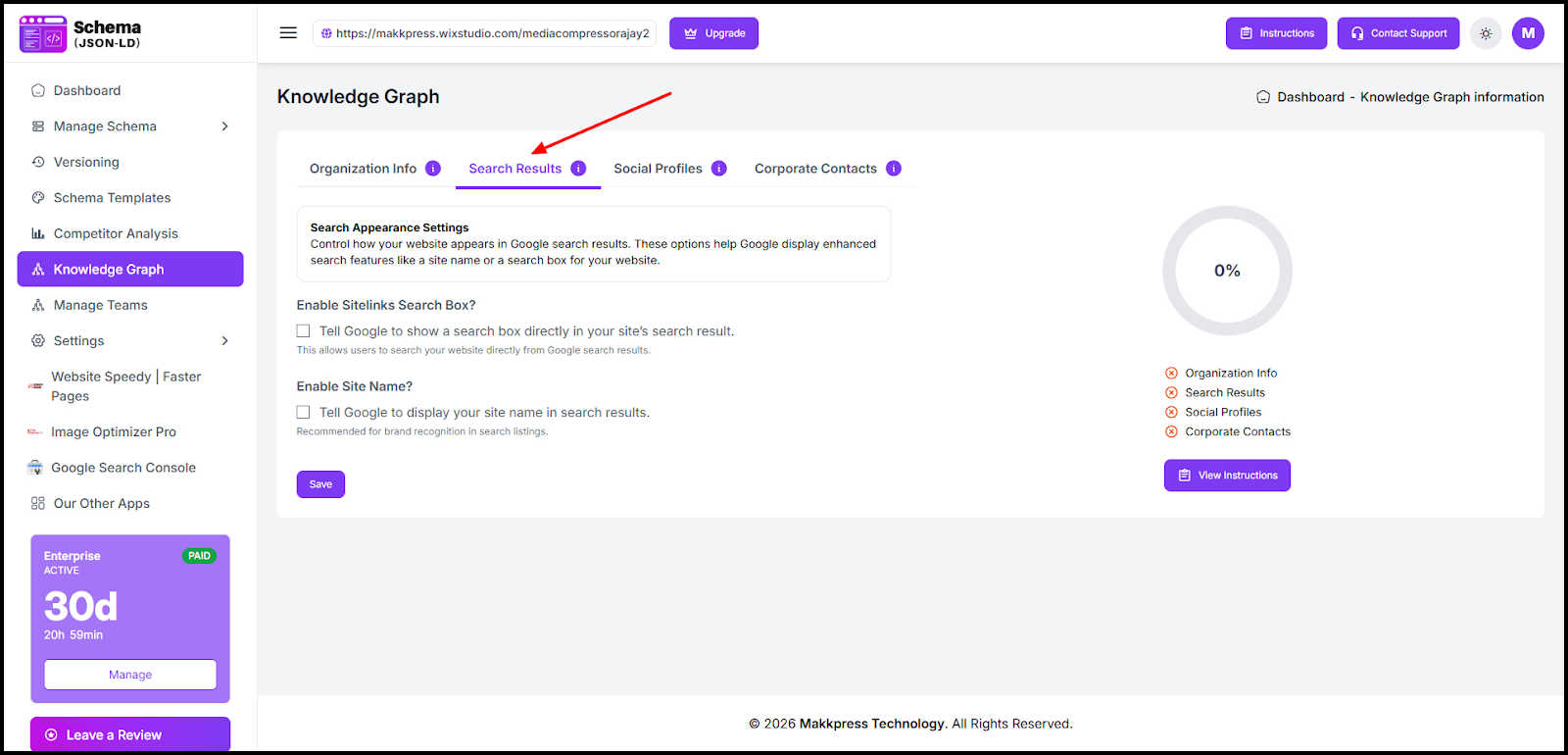 - Enable Sitelinks Search Box