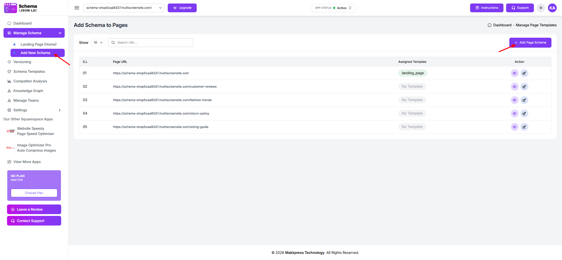 You can also assign schema templates manually. Simply navigate to Manage Schema → Add New Schema → Add Page Schema.