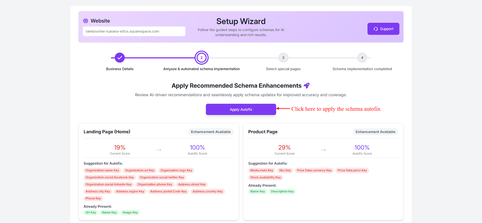 The easiest way to configure product schema is through the Setup Wizard during the initial app setup.