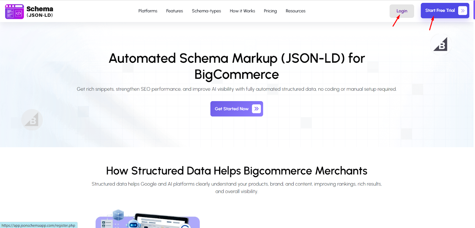 Step 1: Go to the JSON Schema App website and log in to your account. If you do not have an account, click Start Free Trial and create one.