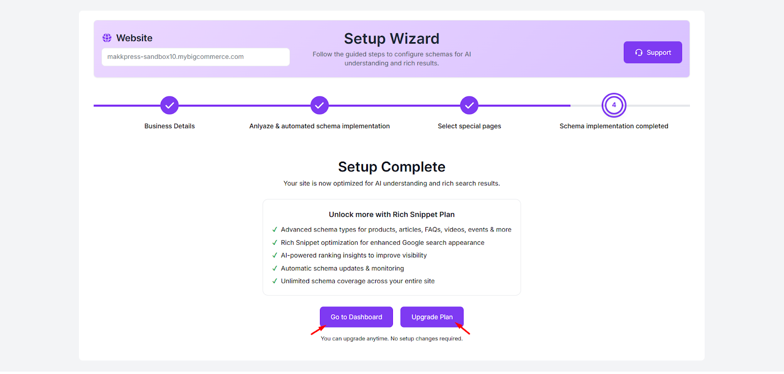 Step 13: Your JSON Schema App setup is now complete. Click “Go to Dashboard” to manage your schema settings and monitor your website’s structured data.