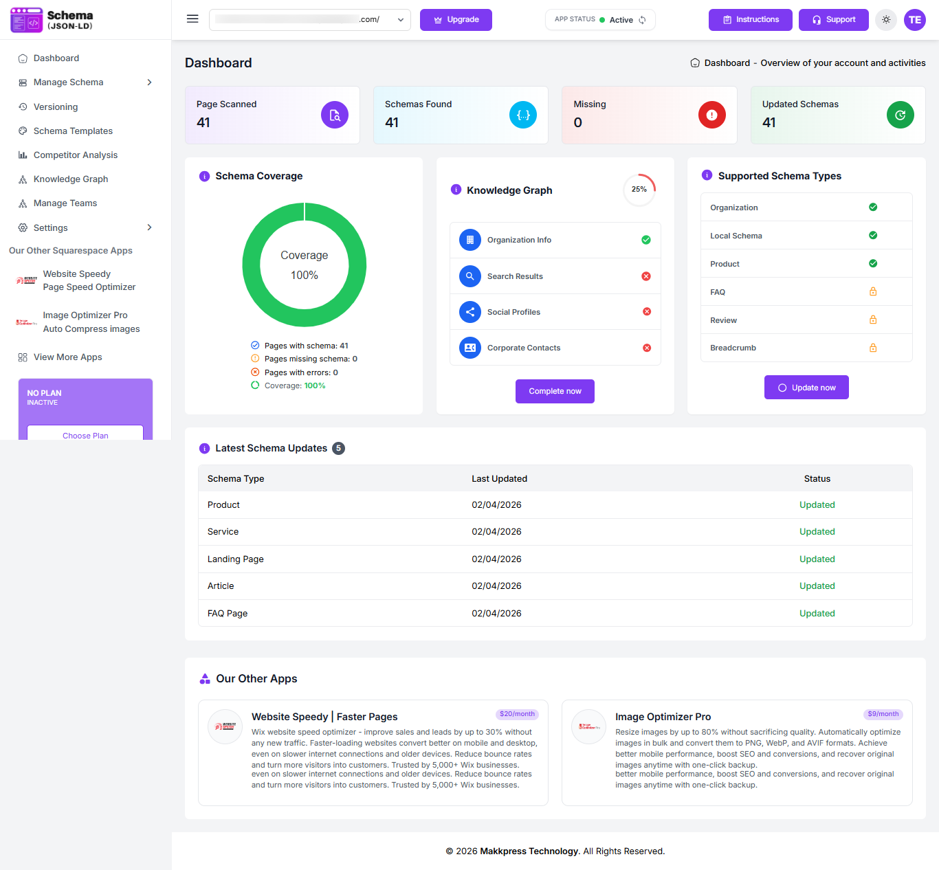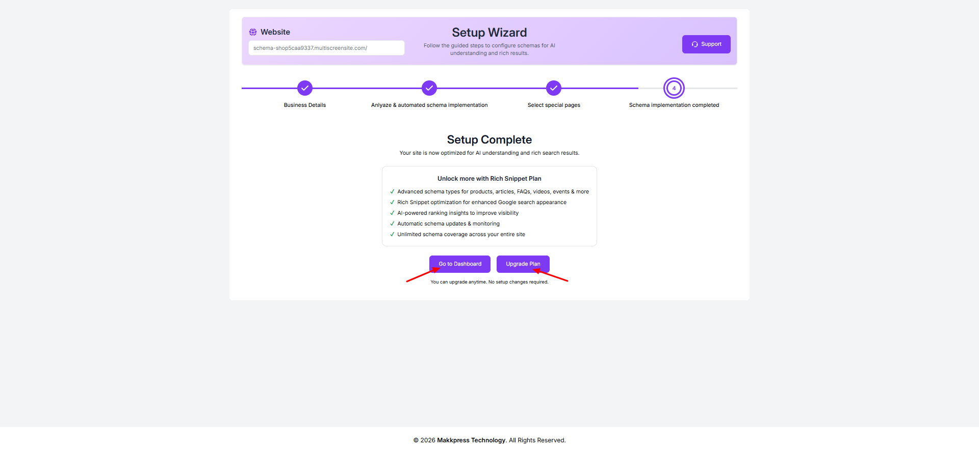 Step 14: Your setup is now complete. Click “Go to Dashboard” to manage your schema settings or choose “Upgrade Plan” to access additional features.