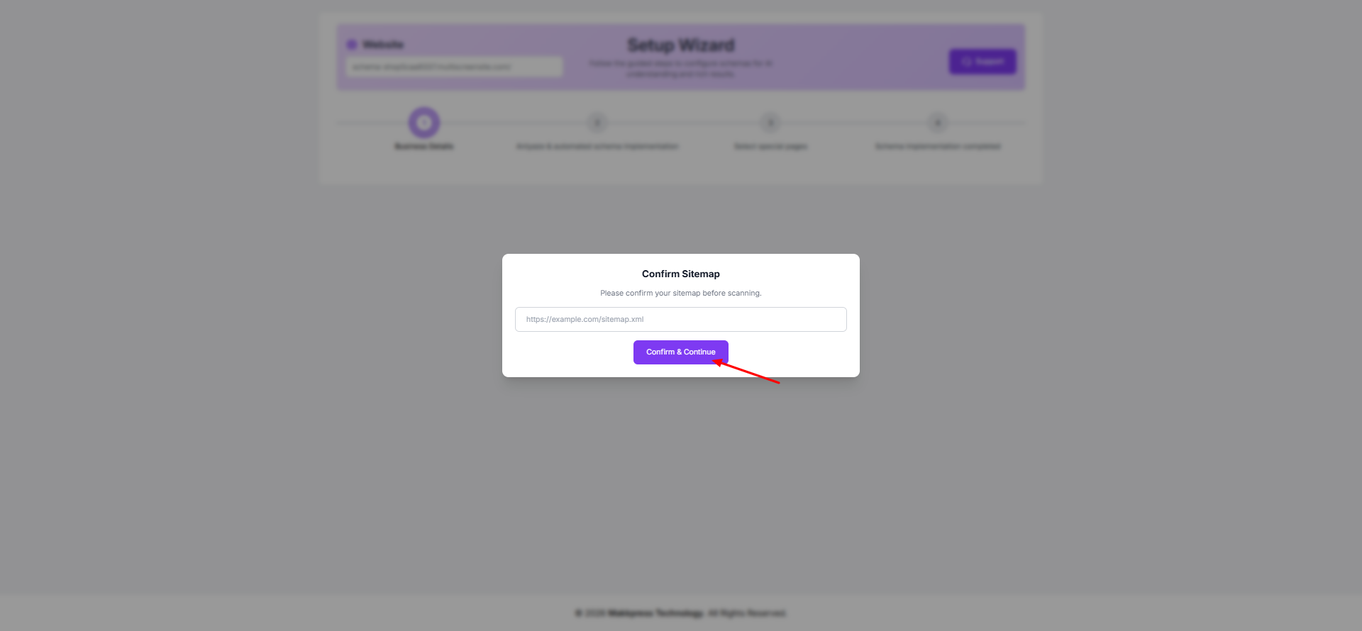 Step 8: Confirm your website sitemap URL and click “Confirm & Continue” to allow the tool to scan your Duda website.