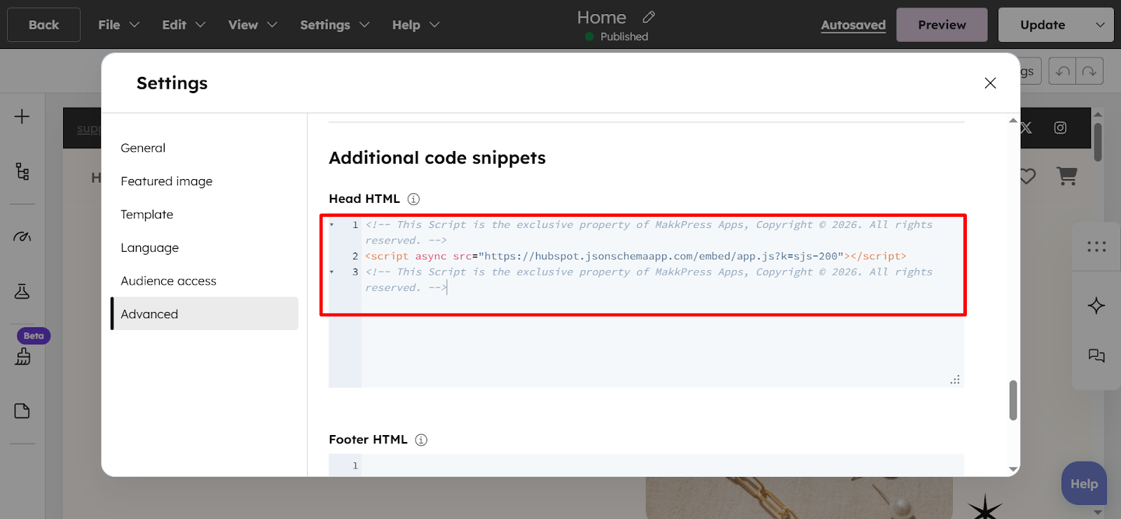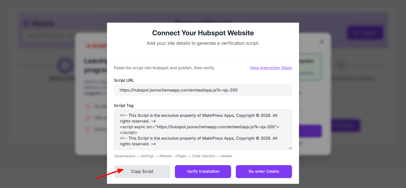 You’ll need to add this script to your HubSpot store to verify and activate the JSON Schema App.