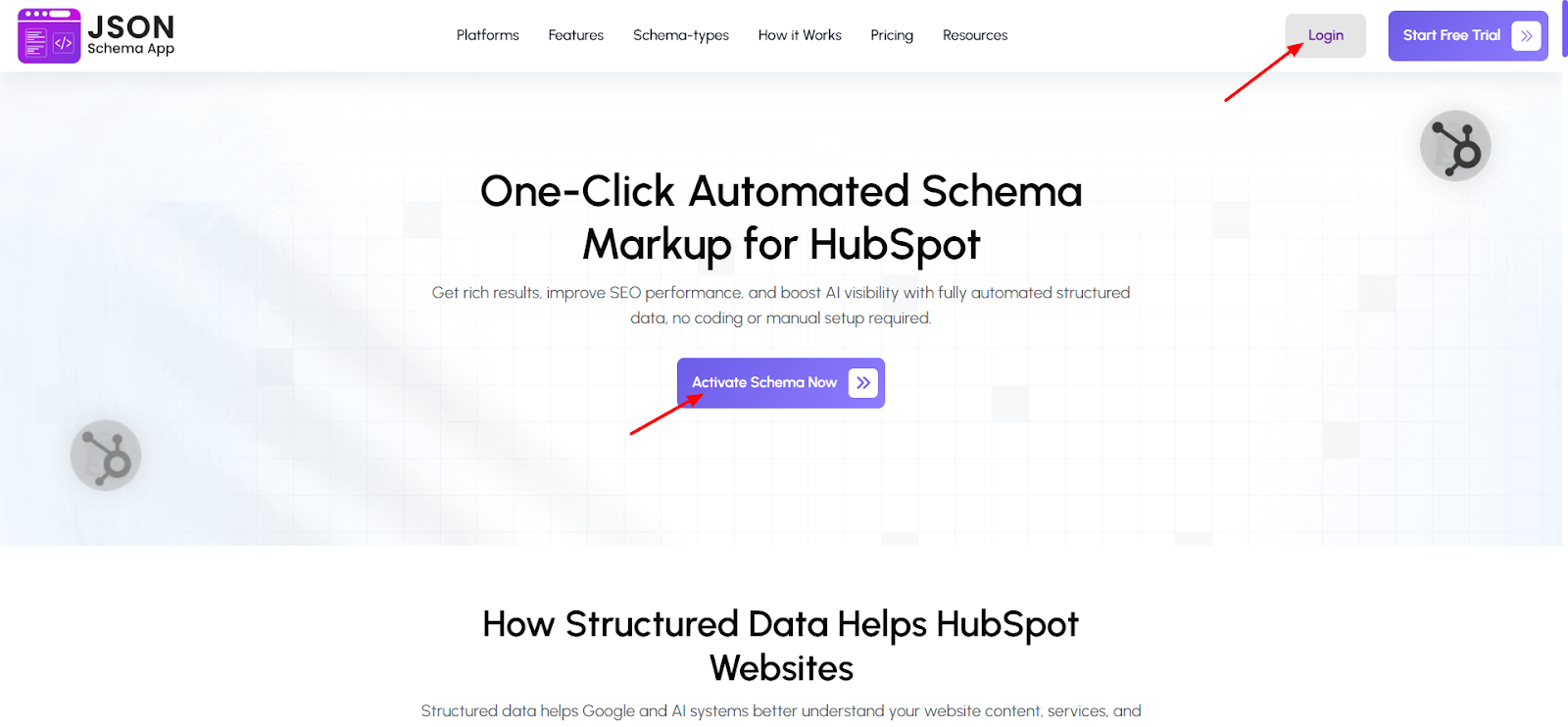 Step 1: Go to the JSON Schema App website and log in to your account. If you do not have an account, click on the Activate Schema Now button and create an account.