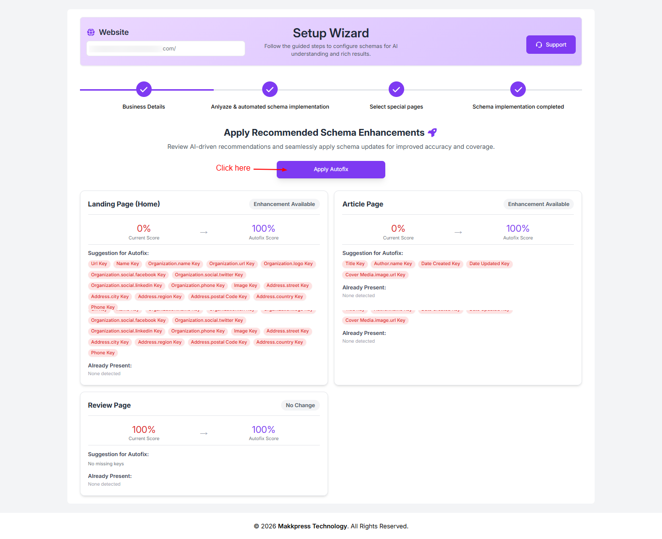 Step 9: Review the suggested schema enhancements and click “Apply Autofix” to automatically implement the recommended updates