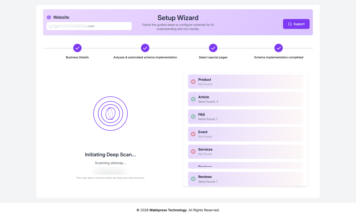 Step 8: The tool will begin a deep scan of your website to identify pages and detect applicable schema types automatically.