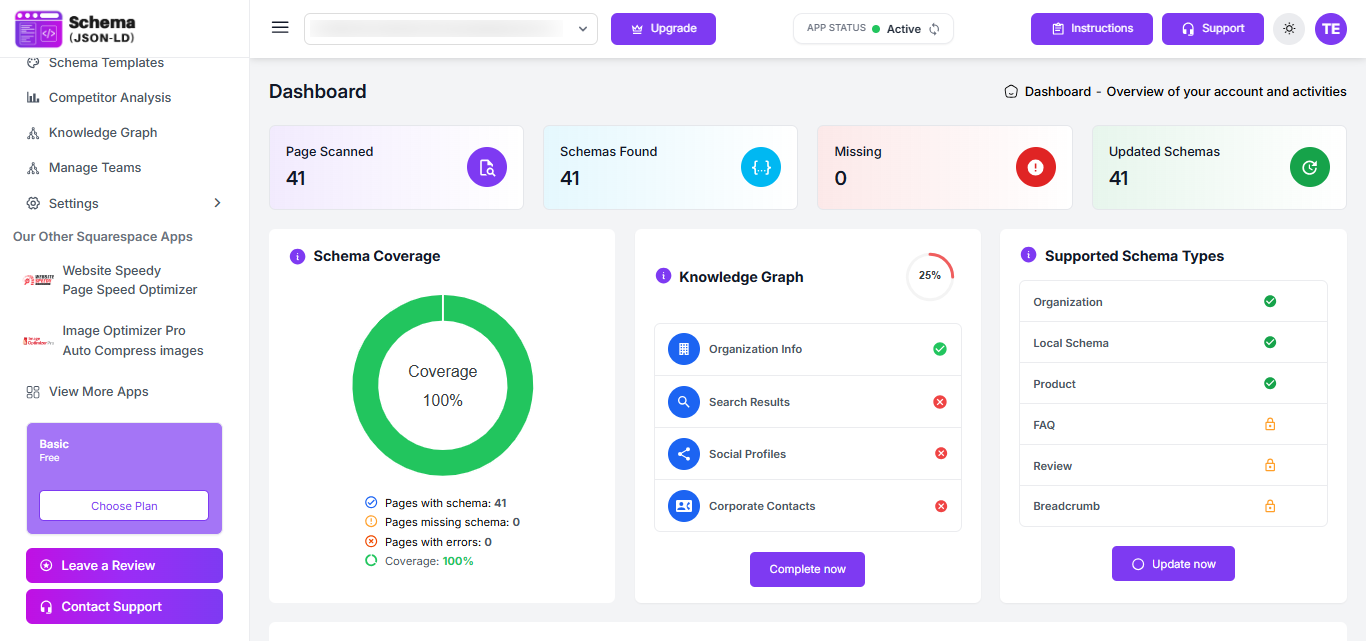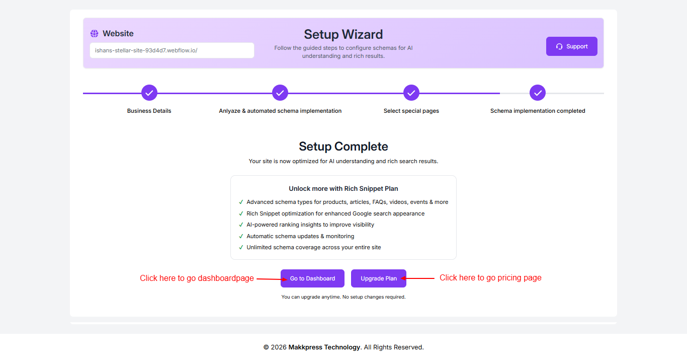 Step 11: Your setup is now complete. Click “Go to Dashboard” to manage your schema settings or choose “Upgrade Plan” to access additional features.