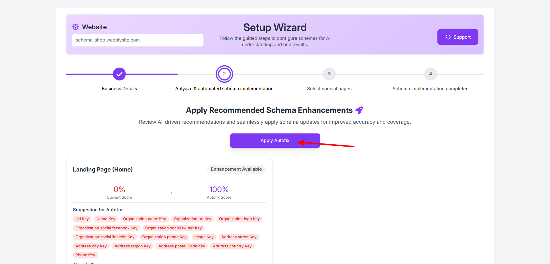 Step 10: Review the suggested schema improvements and click “Apply Autofix” to automatically implement the recommended updates.