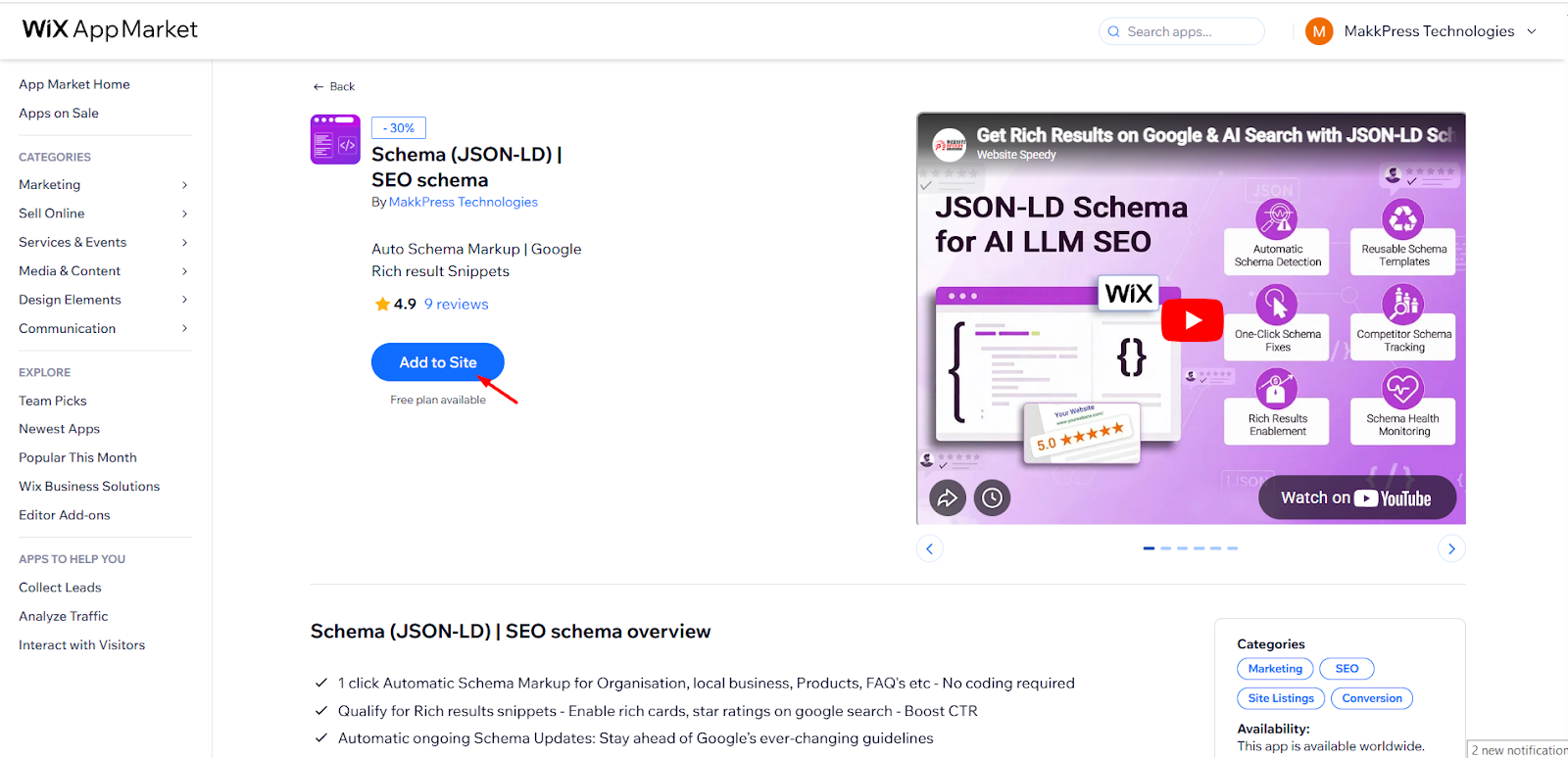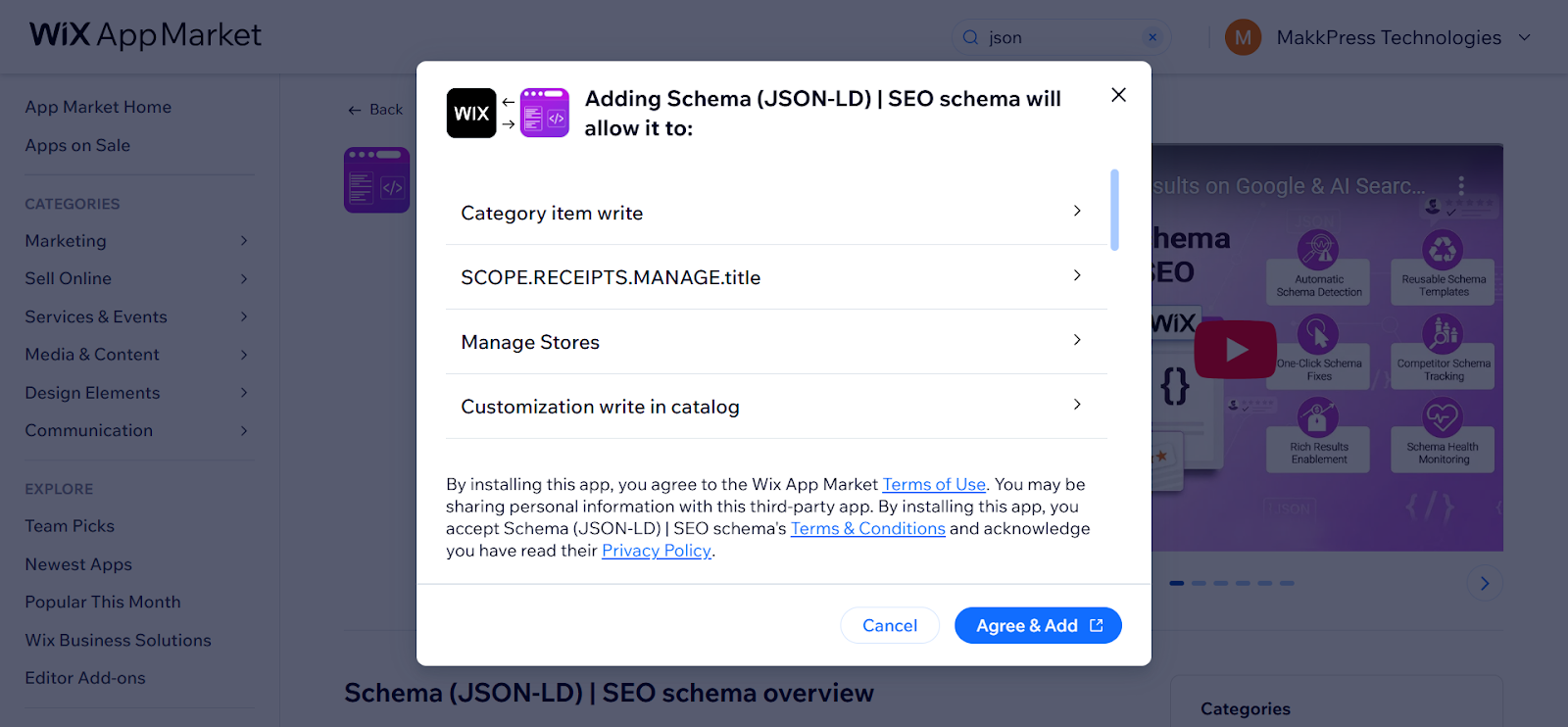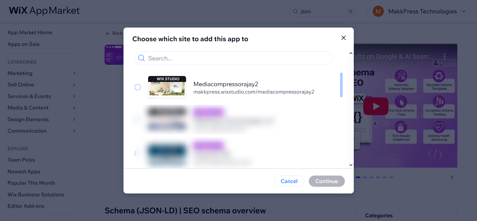 Step 2: Go to the JSON Schema App in the Wix App Marketplace.