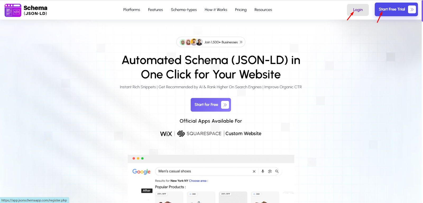 Step 1: Go to the JSON Schema App Website and log in to your account. If you do not have an account, click Start Free Trial and create one.