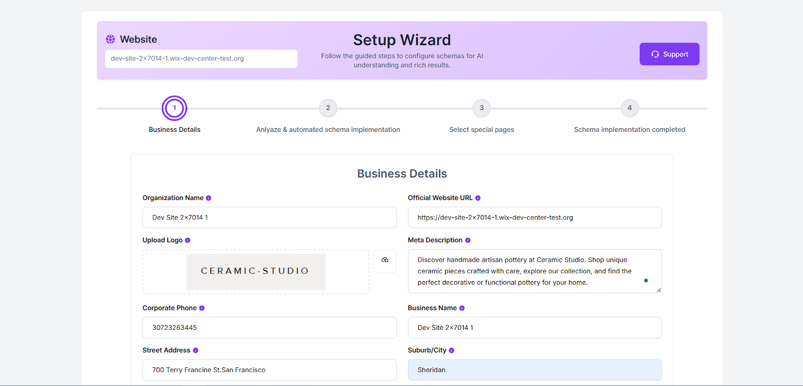 Step 8: Enter your business details such as Organization Name, Website URL, Logo, Meta Description, Phone Number, and Address. After filling in the required information, click on Save changes.
