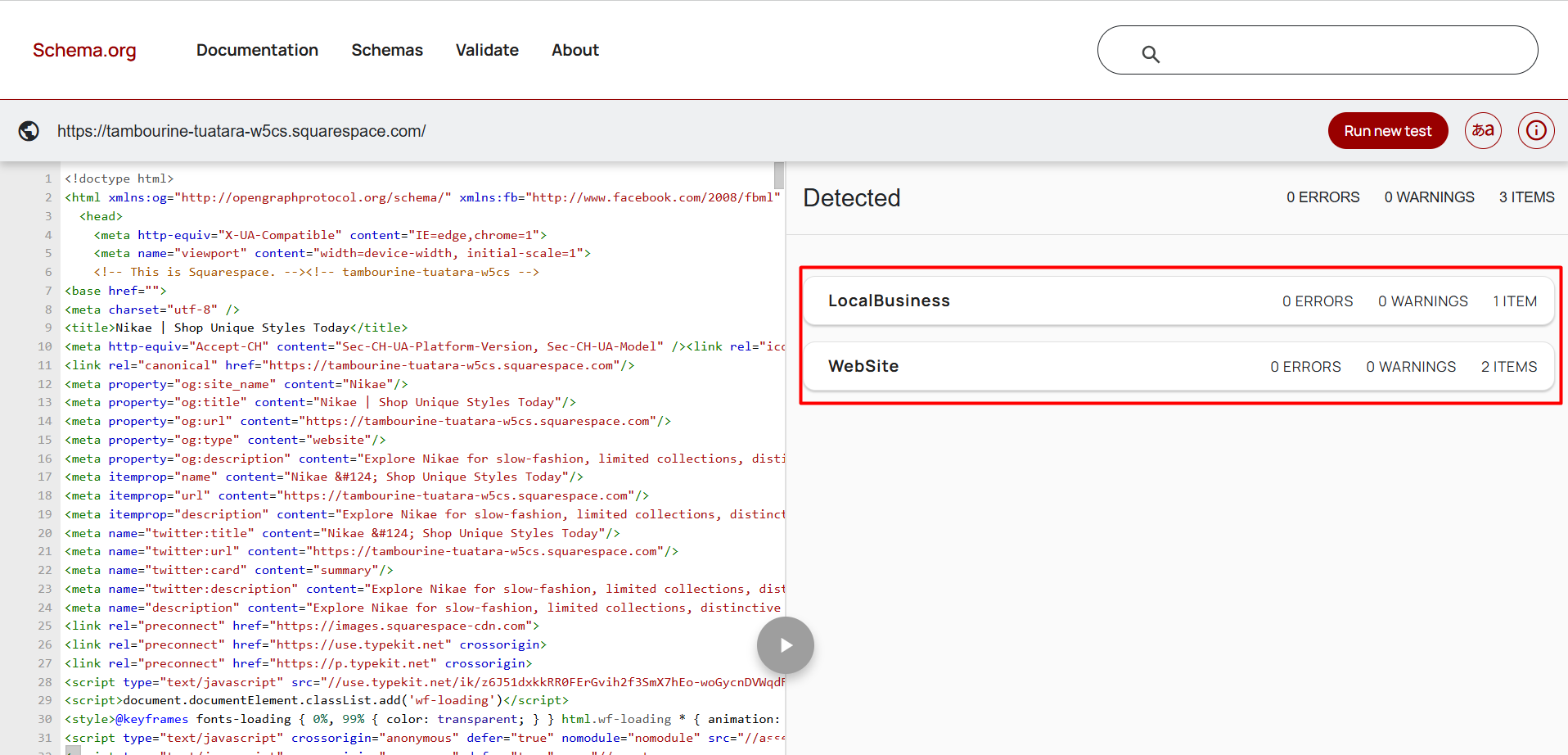 Follow these steps to check if your schema is correctly implemented and working on your Squarespace website using two methods.