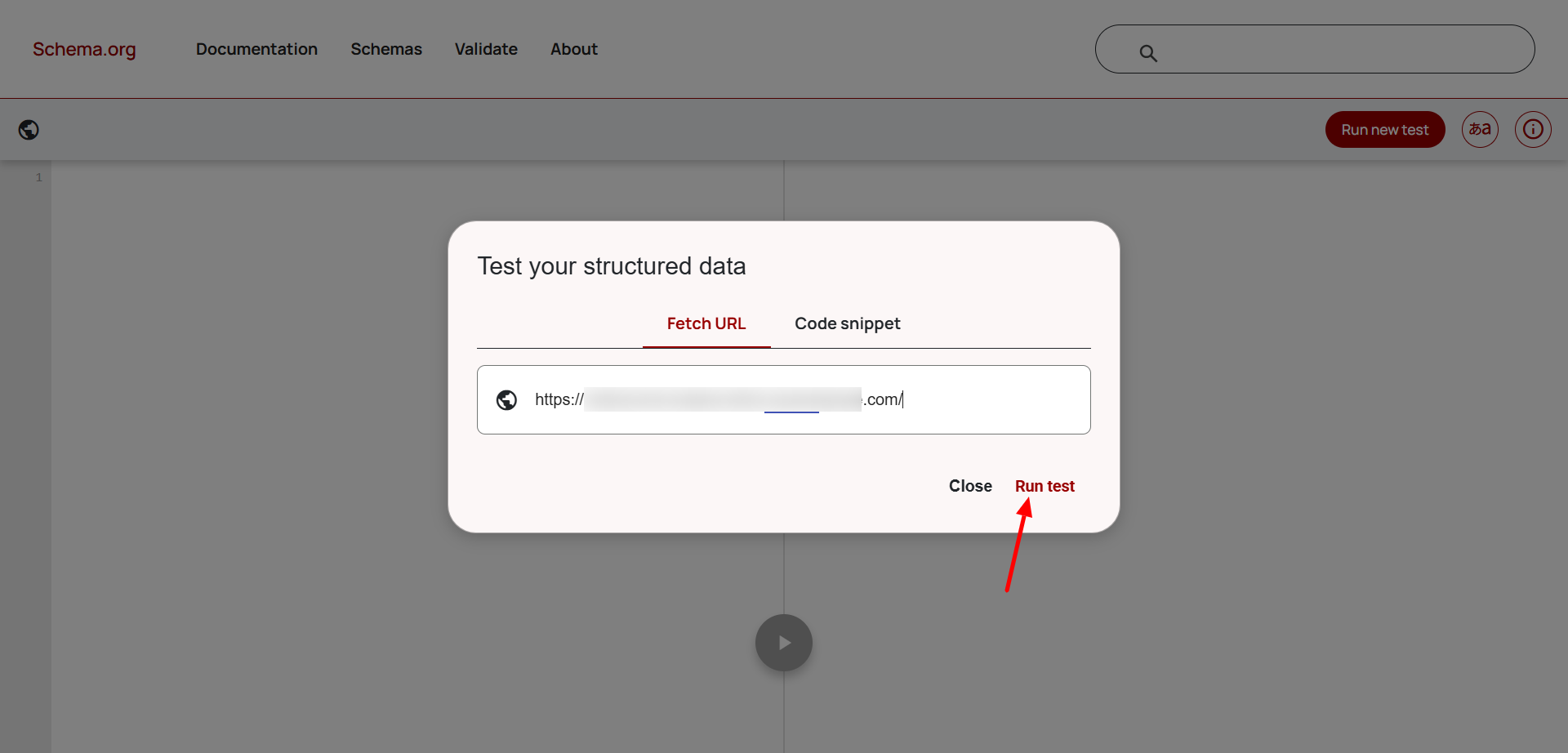 Step 1: Open Schema Markup Validator, enter your page URL in the input field, and click Run Test to start validation.