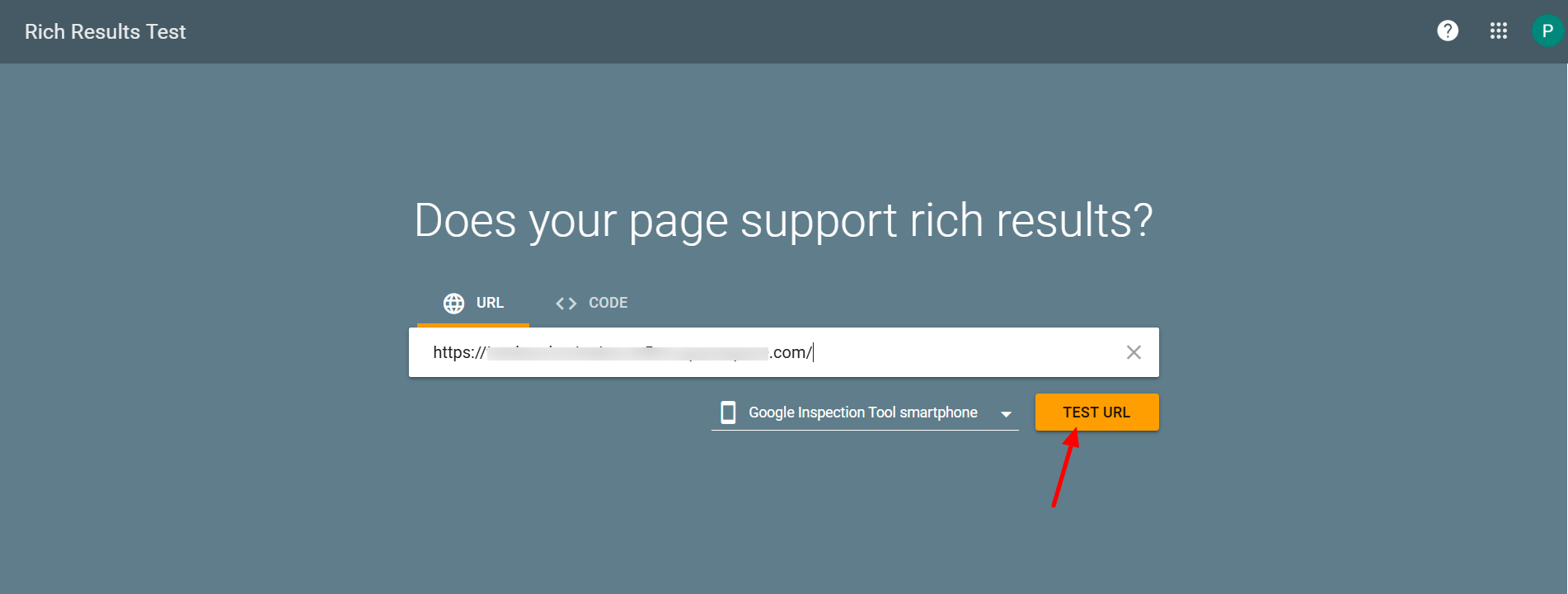 Step 1: Open Google Rich Results Test, enter your page URL in the input field, and click Test URL to run the test.